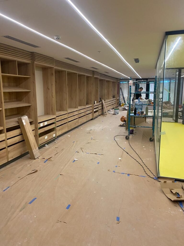 - Instalación de pisos, divisiones y cielos rasos