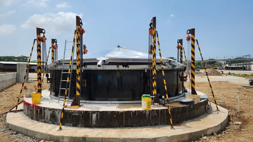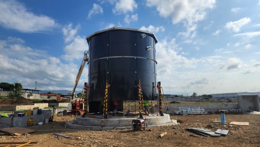Tanque de almacenamiento en acero esmaltado de uso mixto para contraincendios y agua potable de 70.000 galones.