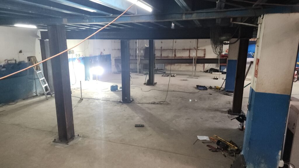 Estructura soldada para refuerzo de 500 m2 de losa de galera